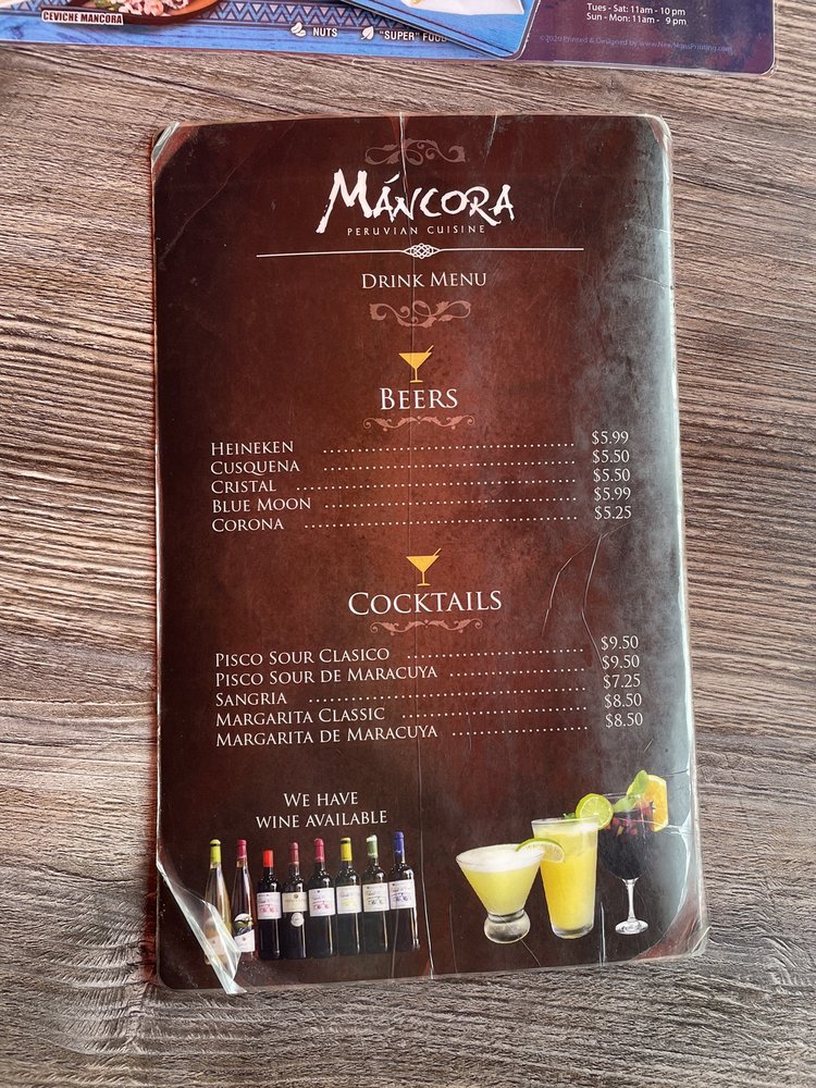 Mancora Peruvian Cuisine Menu (Update 2025)